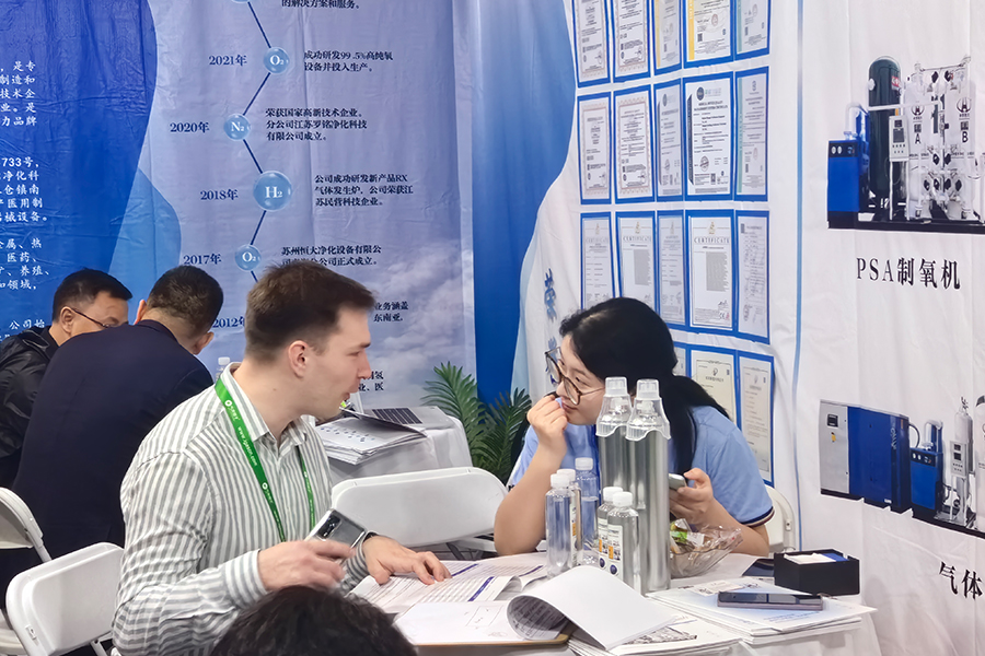 Mula sa mga imahe ng on -site, maliwanag na ang aming booth ay prominently na nagpapakita ng mga larawan ng aming magkakaibang hanay ng mga kagamitan, kabilang ang mga generator ng oxygen, mga generator ng nitrogen, mataas - kadalisayan na mga generator ng oxygen, mga yunit ng paglilinis ng gas, at kagamitan sa pagpuno ng gas. Bilang karagdagan, ang iba't ibang mga karangalan at kwalipikasyon na hawak ng Jiangsu luoming ay ipinapakita. Ang aming dedikadong koponan ng benta, na may lakas na may enerhiya, ay gumagamit ng kanilang kaalaman sa industriya ng malalim na industriya upang ipakilala ang aming kagamitan sa pagputol - gilid sa pagbisita sa kliyente.